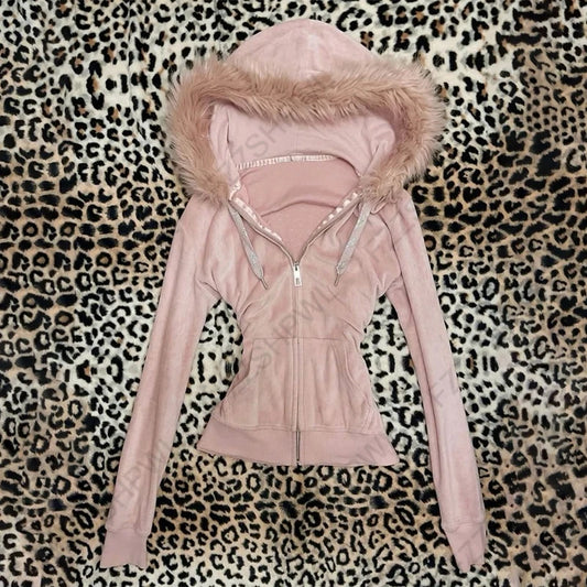 Gotycka Bluza z Kapturem i Futrzanym Wykończeniem