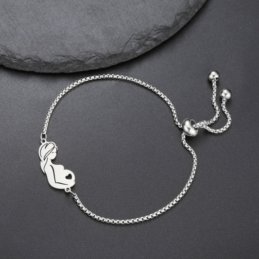 Mom Baby Clear Zircon Round Pendant Necklace Stainless Steel Gold Color Choker Fashion Family Jewelry Mother's Day Gift New In