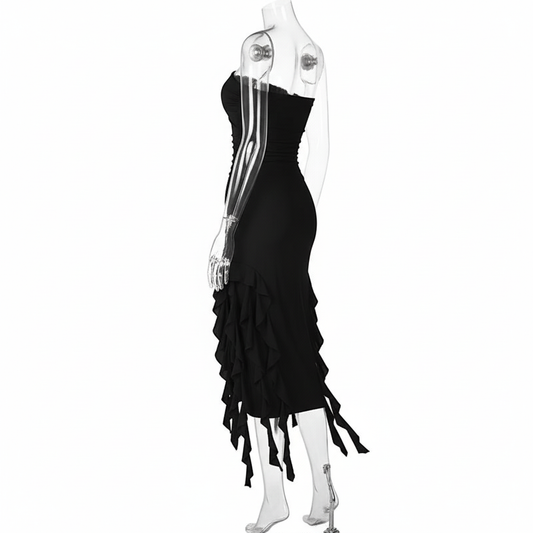 Sukienka Midi z Efektem Falbany i Wycięciami
