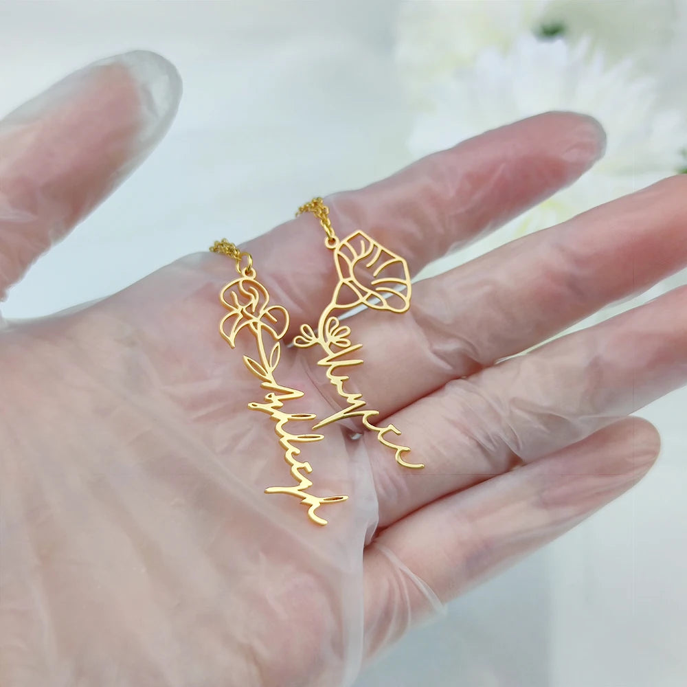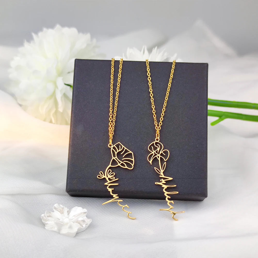 Custom Name Flower Necklace with Birthstone Pendant Necklace for Women Personalized Stainless Steel Jewelry Choker Birthday Gift
