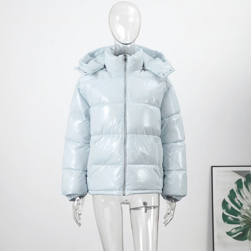 Model Number: Solid Glossy Zipper Hooded Coats