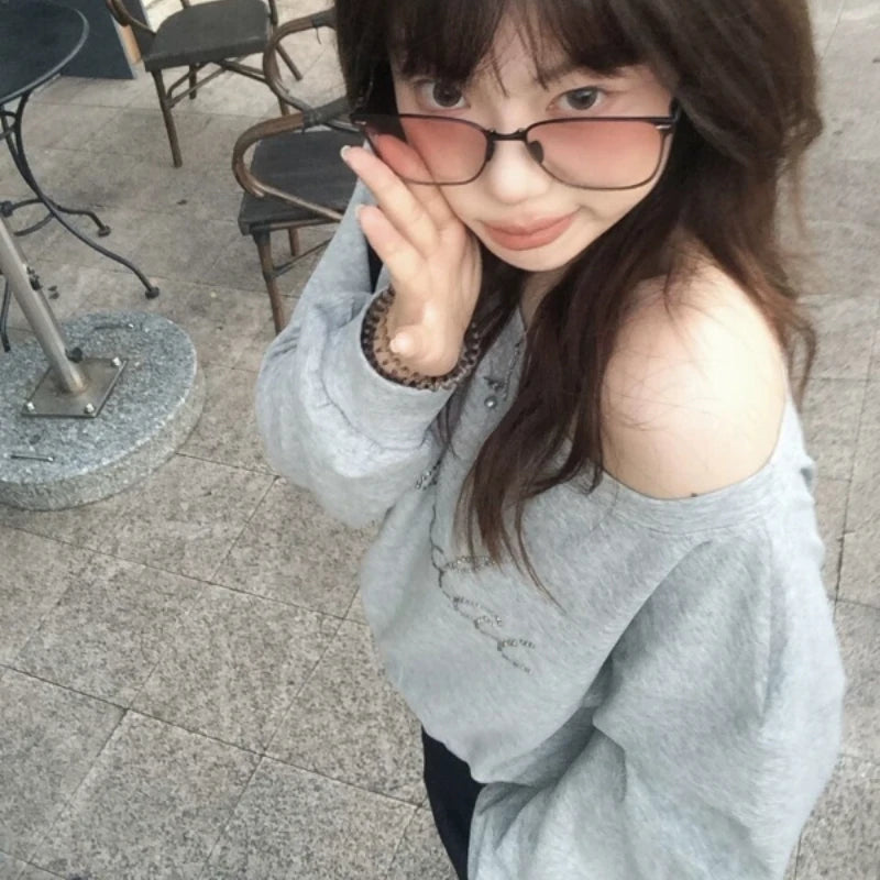 Women Hoodies Autumn Streetwear Off Shoulder Seductive Cropped All-match Sweatshirts Baggy Fashion Print Design Aesthetic Casual